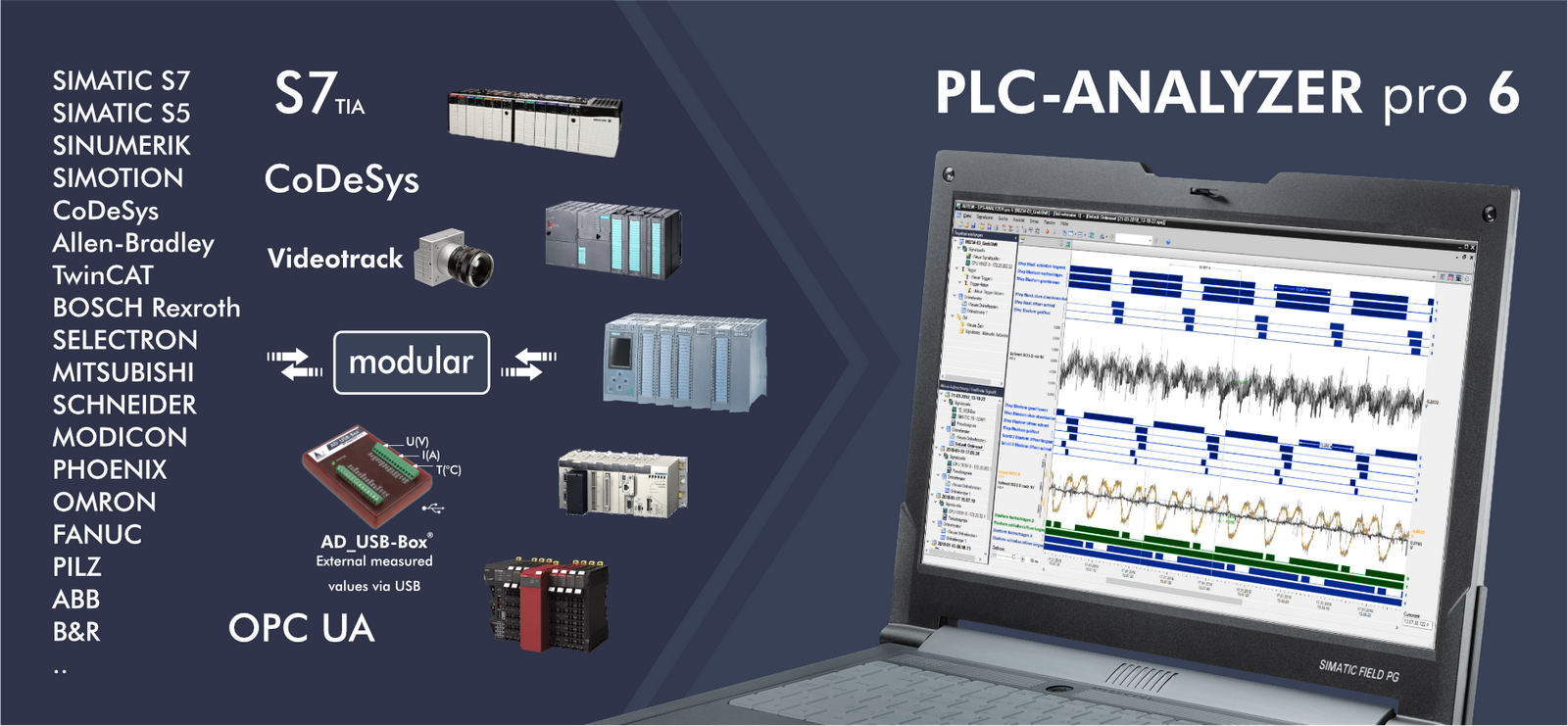 To complete the field of application of PLC-ANALYZER pro 6, additional hardware can be linked to the software.