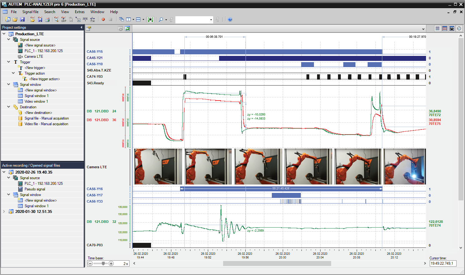 Whether in the automotive industry, mechanical engineering, food industry, chemical industry or other industries. PLC-ANALYZER pro 6 by AUTEM is a software system for logic analysis and recording of measured values in PLC-controlled facilities. Acquisition, representation and evaluation of PLC signals such as input, output, flags, timer, counter, data of data blocks, is now very easy. In addition, video data can also be recorded synchronously with the PLC process data.